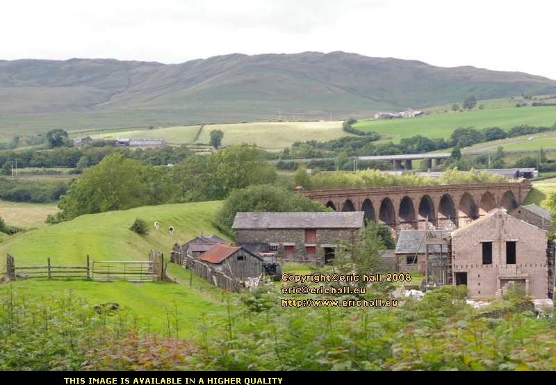 We left the Waterside Viaduct and carried on northwards. As one drives down the hill towards the M6 Motorway, one is suddenly presented with this most magnificent view of impressive Victorian railway architecture. We are pretty close to the junction with the main west-coast line to Carlisle, and just behind the viaduct you can just about make out the gantries of the overhead power lines for the electric traction.