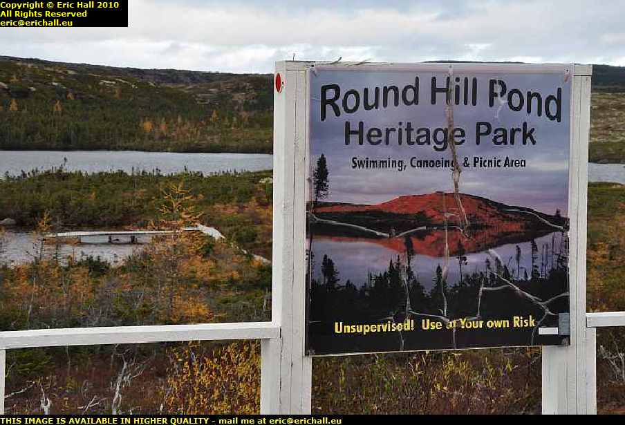 So just in case you do not believe me, here's a close-up of the sign that says Round Hill Pond. You will of course notice that it mentions on the sign the possibility of swimming. Now who on earth would go swimming for pleasure in this pond? In fact, who at all would go swimming for pleasure anywhere in Labrador? It has however warmed up quite dramatically from the other day when I was up on the Labrador plateau and it is now a handsome 5°C.
