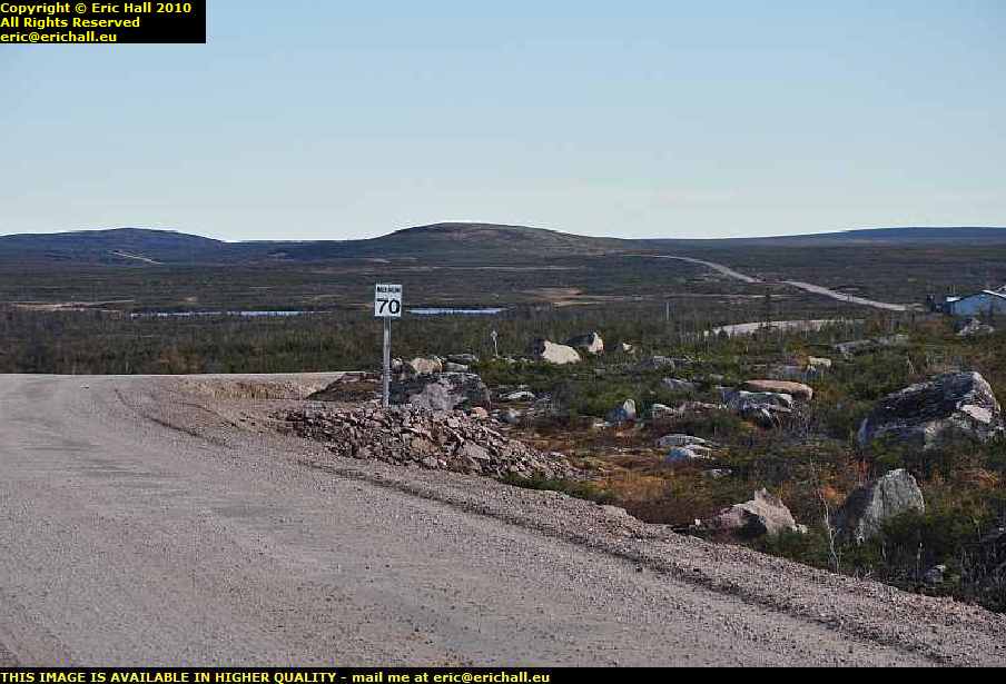 The speed limit along the Trans-Labrador Highway is 70 kilometres per hour and there are indeed places where you need to be reminded of the fact. There are other places where a speed warning sign is superfluous. Like the road for the last ... ohhh ... ages, or so it seems.