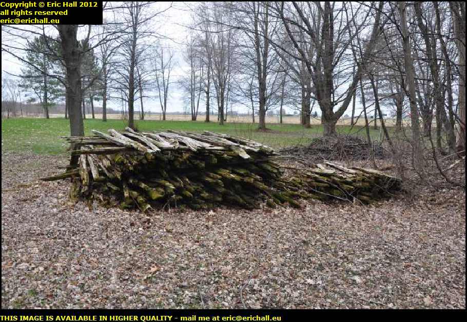 As I wander a little further along the site of the second Chemin du Roy, I stumble across a pile of neatly-stacked wood. There are two things that I notice about this stack -