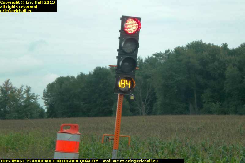 Many of these temporary traffic lights in North America (and one or two in Europe, I'm now noticing) have little indicators to tell you how long you have to wait for them to change.