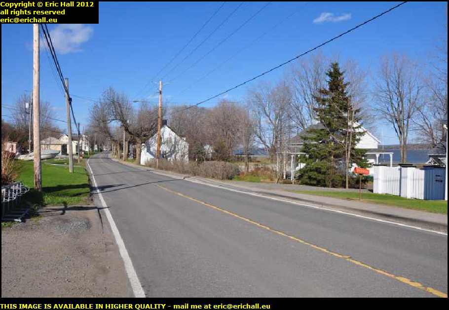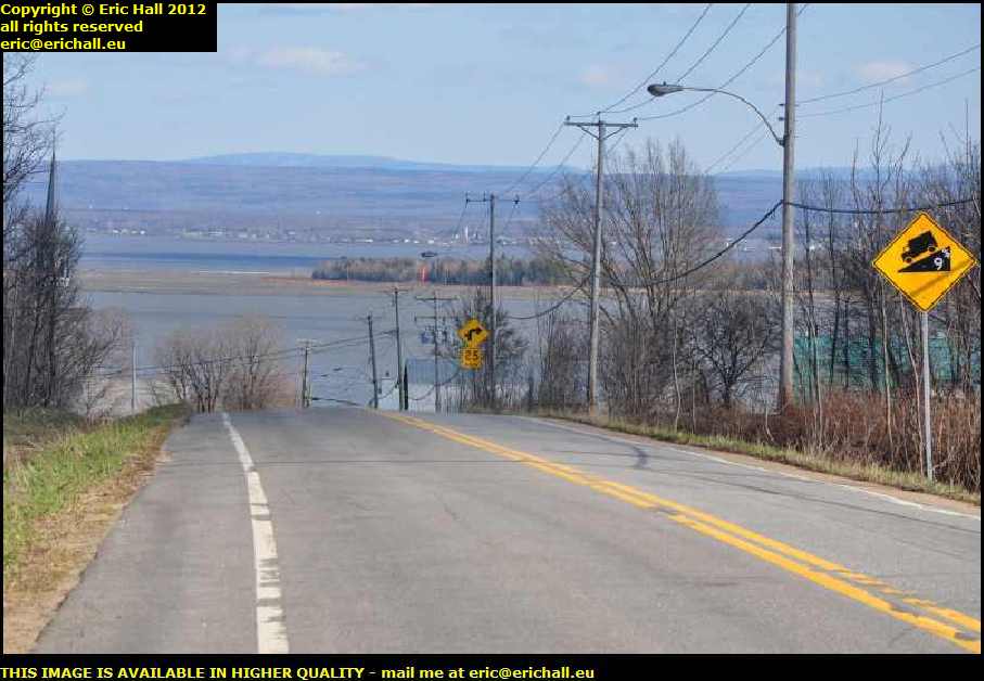 The road goes up over a slight eminence where there is another excellent view across the St Lawrence to the southern shore in the beautiful weather that we are having today.