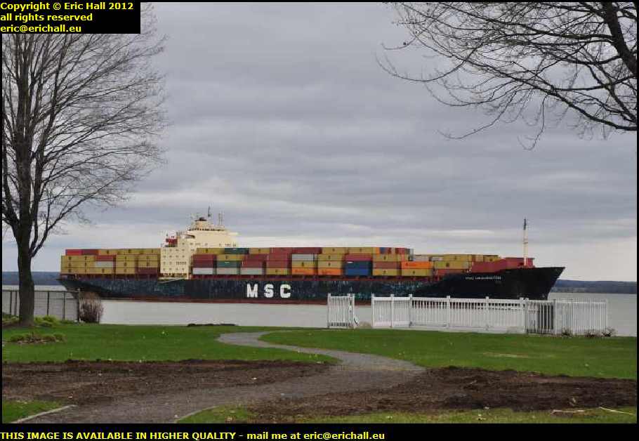 Why I stopped here in 2012 was not necessarily to take another photo of the church but to take a photo of this magnificent container ship that was busily sailing up the St Lawrence as I was driving along.