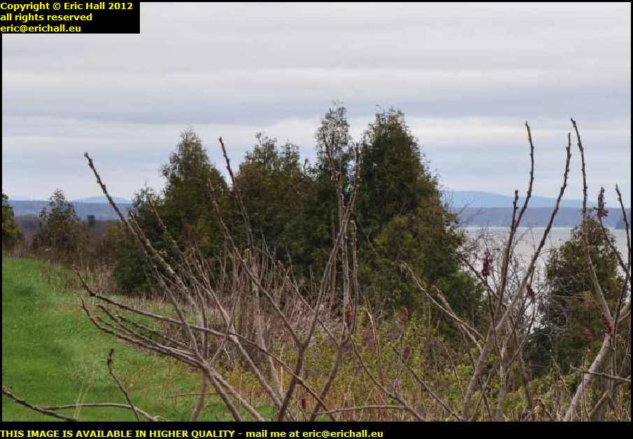There is said to be just one meander in the whole of the downstream St Lawrence and that, I reckon, is it. If you look very closely at the far right edge of the photograph you'll be able to see the headland of the Pointe au Platon poking out into the river. The river, which is flowing north-east at the moment, turns round there and heads off in an easterly direction for a while.