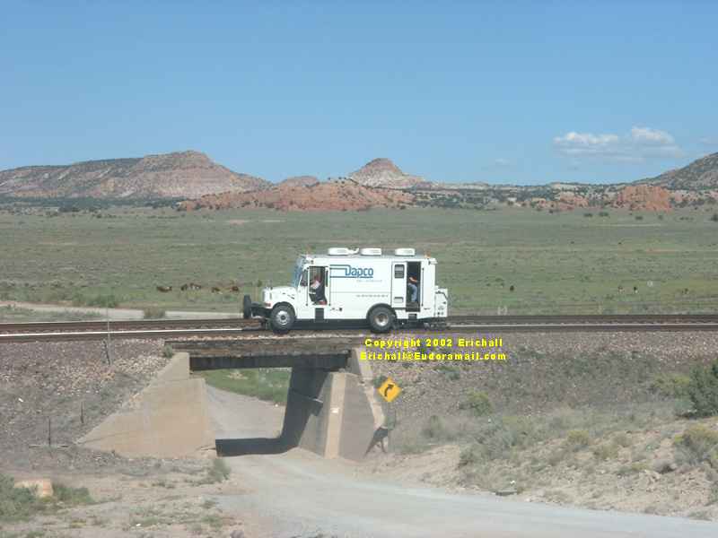 So here you are (at Gallup, New Mexico, in fact) at a level crossing waiting for a train to pass, and what do you see? Another one coming in the opposite direction that's going to pass the crossing just after the other one has cleared it. A nice 20-minute wait. This is evidently the origin of the phrase "I'm just going for a quick Gallup around while I'm waiting".