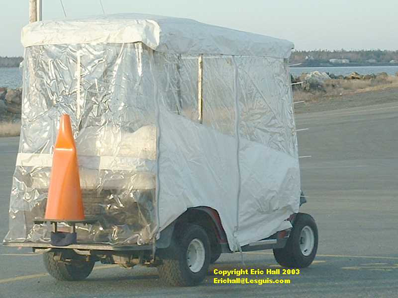 Once the ship had unloaded, we formed up in a line behind the pilot car, a little microcar, and were waved off onto the ship.