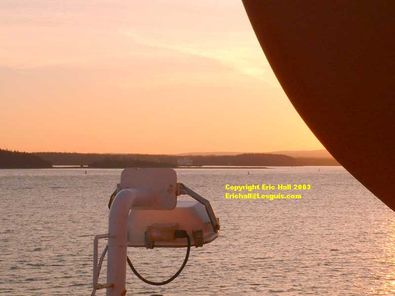 Once loading was complete the ship set sail with its bow doors open (obviously news of the "Herald of Free Enterprise" disaster never reached as far as here) from Caribou into the sunset. There was a safety announcement, but it was drowned what an unfortunate turn of phrase out by the noise of the television.