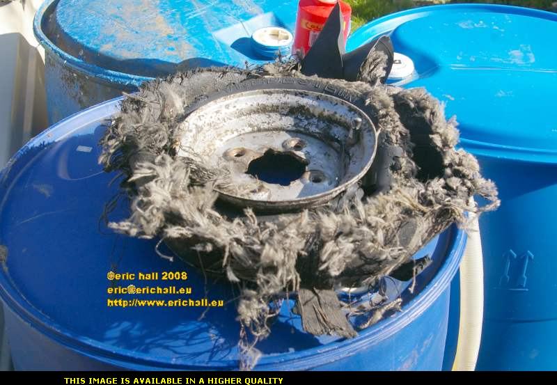 If you look just underneath the valve you can see the split in the rim. And that's the worrying bit. The other wheel is of course of the same vintage, so I reckon that the next time I'm in the UK, I'll go to Towsure and pick up a couple of new ones. And then I'll need to order some heavy duty tyres. Steel-banded, not textile ones.