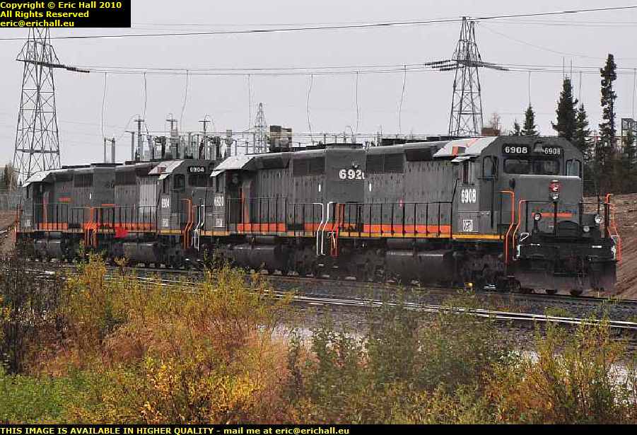 Having left Labrador City, rather later than intended yet again, and in the rain and sleet, I've been encountering railway locomotives and that kind of thing.