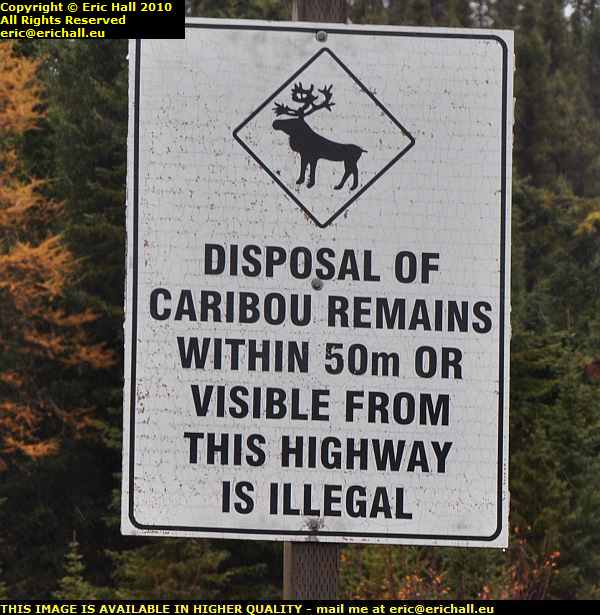 If you just happen to be transporting caribou remains around with you and you need to dispose of them in accordance with local authority by-laws, then this sign tells you how to do it. It's quite an important consideration so don't forget your very long tape measure. You'll need it