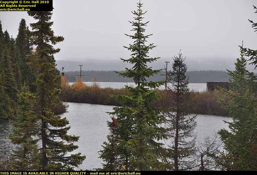 And right now things seem to be happening thick and fast. I almost immediately fall upon a road sign telling me that Churchill Falls is 121 kms (am I really only about halfway there? It seems as if I have been driving for a week!) and Happy Valley - Goose Bay 416. That's an enormous distance to cover in the rest of the day over uncertain roads and in uncertain weather but nevertheless I ought to be putting my foot down a little.