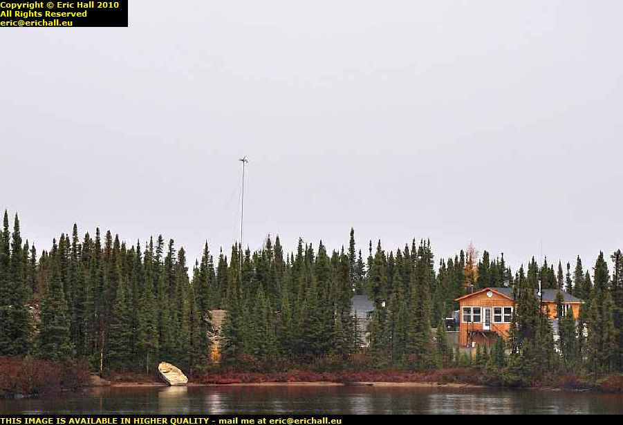 Round about kilometre 67 my attention is drawn to this building here on the shore of a lake. Or, to be more precise, the wind turbine that is quietly doing its stuff on top of the tower just to the left of centre.