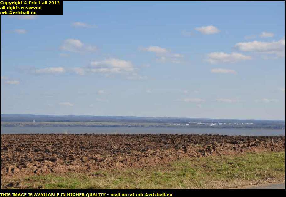 The road goes up over a slight eminence where there is another excellent view across the St Lawrence to the southern shore in the beautiful weather that we are having today.