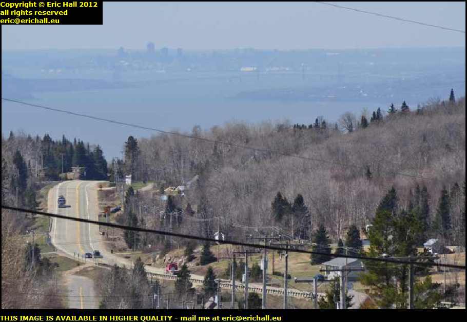 You can see the road over which I have just driven, and in the centre of the photo in the distance, nestling discreetly in a little hollow, is the town of St Tite des Caps.