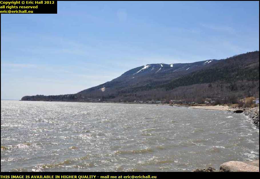 You can see the ski runs of Le Massif too, up there on Cap Tourmente. But you'll see that the April sun has been having a good go at them already. You need really exceptional weather conditions to support a south-facing ski slope and that doesn't happen around here. The late Spring and Summer, from what I have seen, are quite often warm and sunny and not even 240cms of snow will last too long in that kind of weather.