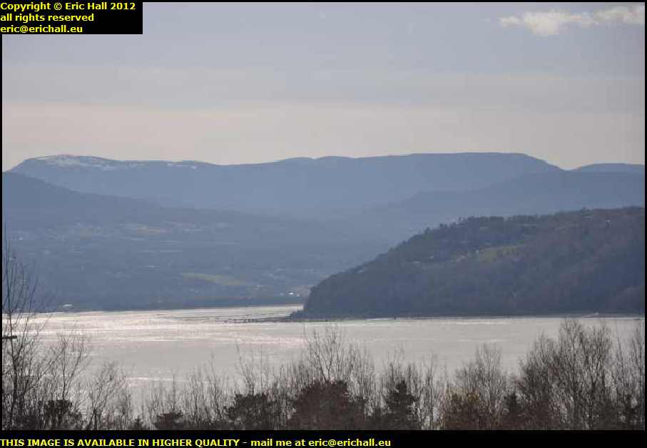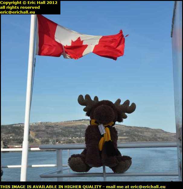 In 2012, here I am on the ferry having a really good view of the hill in the background because although the weather might be overcast and cloudy to the west, the view to the east and up the hill to the small town of Les Eboulements is, as they say over here, quite degagé.