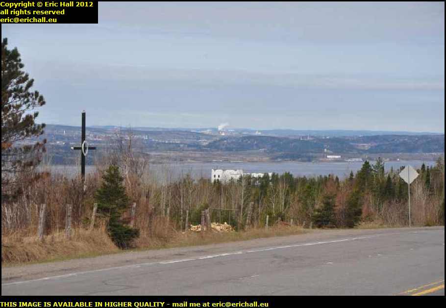 This is the Saguenay Fjord and in the distance we have our first view of the considerable amount of industry away in the distance around Chicoutimi and Alma. As for the cross in the foreground, I've no idea what that might be. I couldn't find a sign or anything.