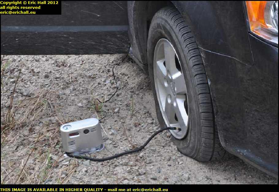 I have a little portable air compressor for moments like these but it's making no headway at all, not even after half an hour. To make matters worse, there's no mobile phone signal either so I can't call up the hire company to seek assistance.