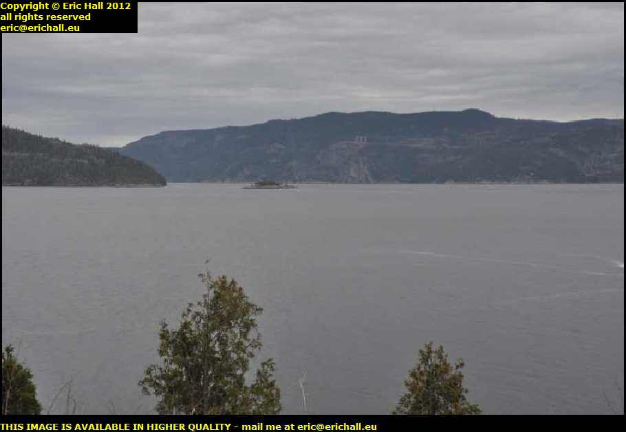 There's a vantage point near the harbour where there's a splendid view of the Saguenay Fjord and where you can take a quite spectacular photograph, I imagine, when it's not teeming down with rain because this past half-hour the heavens have well-and-truly opened. It's a good job that I had my puncture when I did.