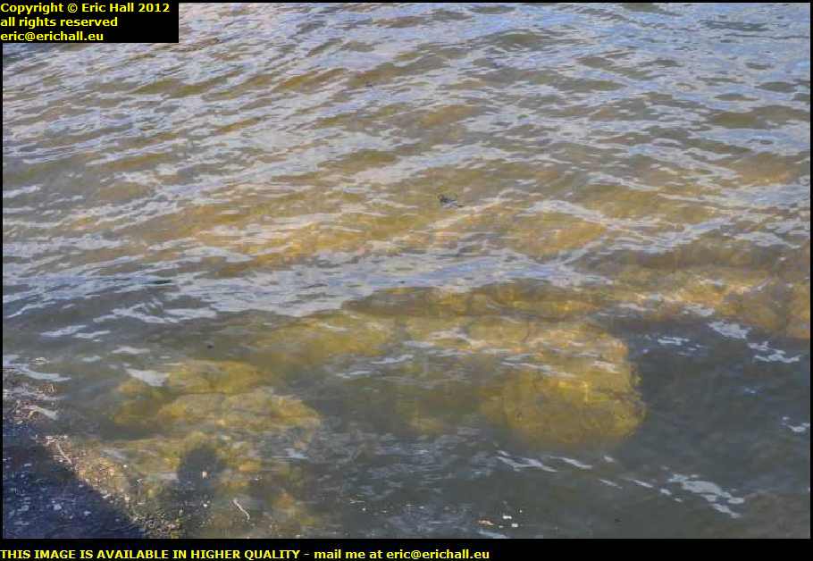 This has brown stains on it too indicating that water drenched with iron oxide has flown over it. It might be from iron ore deposits on the bed of the river, but cynics might say that it's rust off the Empress of Ireland. She was a huge passenger liner that sank on the other side of the river in 1914 after collision in fog with a freighter, with the loss of over 1,000 lives.