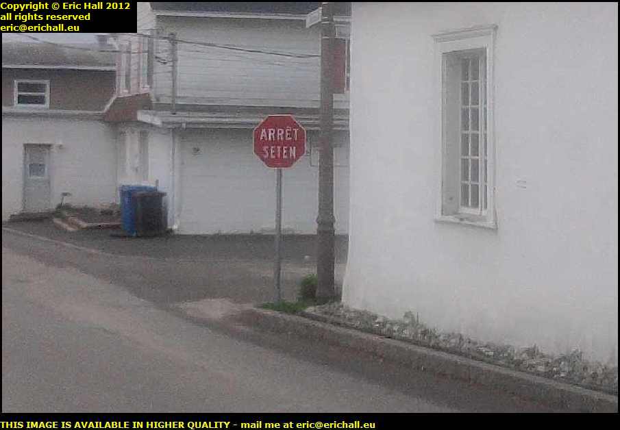 It's not the first time that we've seen a similar sign. You'll remember the roadsign that we saw in the Huron community in the back-end of the city of Quebec where the word ARRET is accompanied by the word SETEN, which I imagined at the time was the Huron word for STOP.