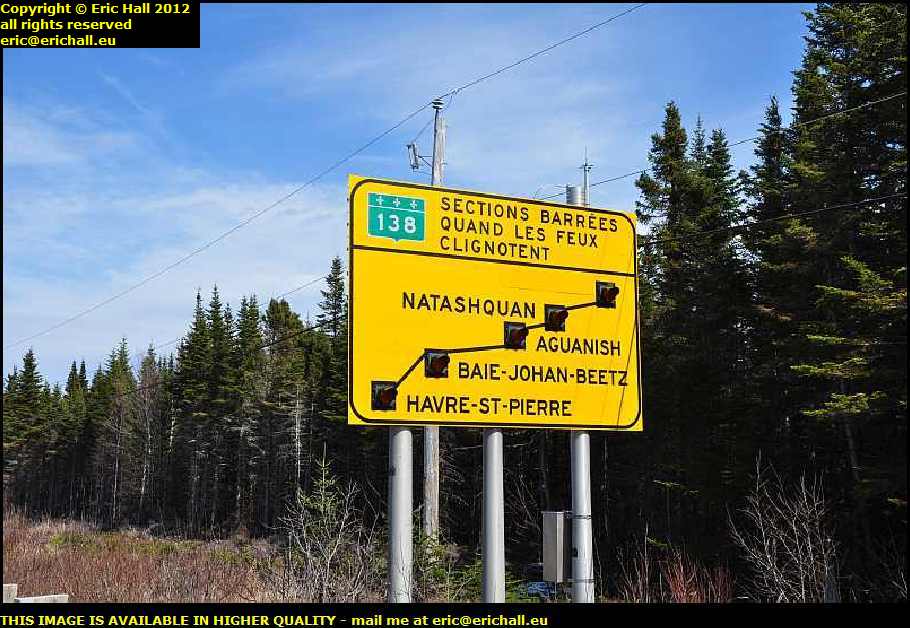 A short distance further on, there's a right turn off Highway 138 to go into the town of Havre St Pierre, but there's a sign telling me that the town of Natashquan is 151 kilometres further on down the Highway.
