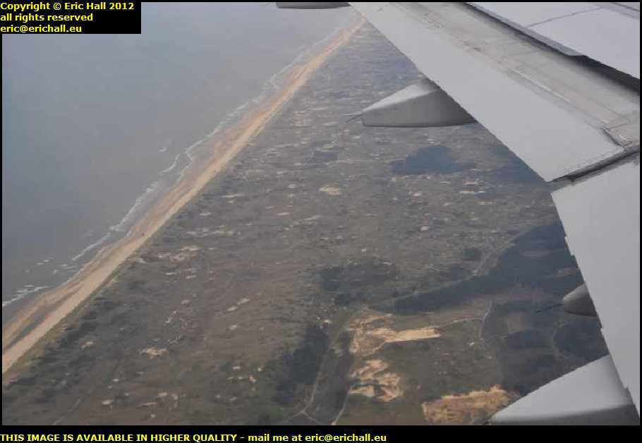 Now I don't really have a clue where we are in this photo because I couldn't seem to be able to make the in-flight display screen work. But the coastline down below here looks similar to how the coastline of the Netherlands looks somewhere to the north of Nordwijk and around Ijmuiden.