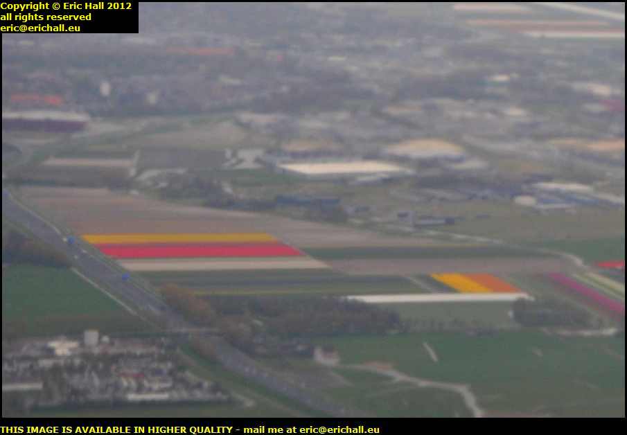 As we approach Schiphol, which means "the graveyard of ships" and which is a testament to how much of what we know today as The Netherlands has been reclaimed from the sea, we flew over a few patches of land that were brilliantly coloured with red and yellow and purple.