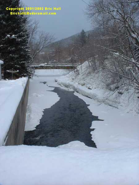 You can see just how cold it is by looking at the stream that passes under the roadway here. The steeper the stream, the faster it flows and the less chance it has to freeze, and this was quite steep.