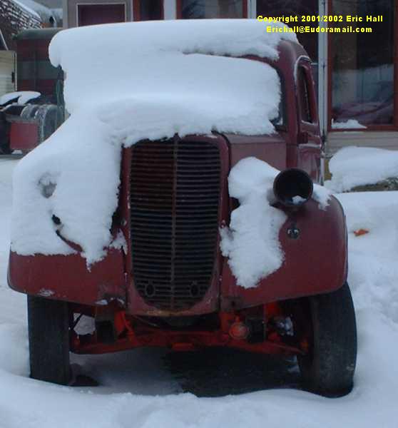 A short way further along the road from the GM pickup, at a small road haulage depot just at the side of the road, I came across this truck standing forlornly in the snow on the forecourt.