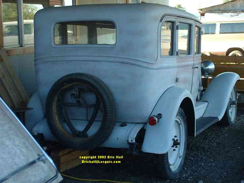 It carries the "bow tie" insignia which, I reckon, makes it a Chevrolet, but I've no idea what. I'd say late 20's or so. In the "Hemmings" that I picked up in Ellsworth, Maine last year, there's a photo of a 1927 Landau, that looks not-too-dissimilar from this, except that where the third rear window is on this one, the Landau has its folding hood