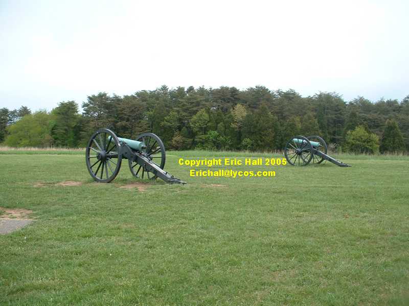 The photograph on the left shows from the position of these guns that the Union troops have completely turned the Confederate flank round through 270°. This is certainly a brave manoeuvre in an attempt to encircle the Confederate forces, but it is a totally foolhardy thing to do when no steps have been taken to protect it against any marauding Confederate soldiers.