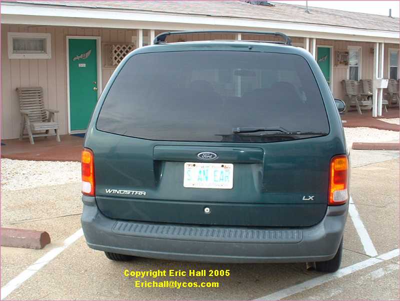 Now, for those of you who don't appreciate my sense of humour, well for once I actually managed to find someone in the USA with a similar sense of humour to mine. Take a look at the number plate of the minivan of the owner of the motel, in the photograph here on the left. Yes, yet another good reason for recommending this motel.