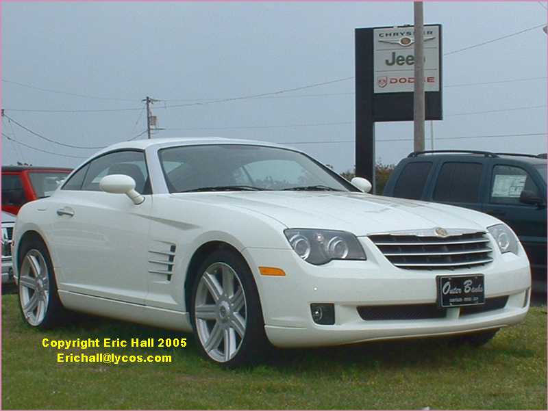 While I was there, I couldn't resist going further down the forecourt to take a photograph of this car. It's another vehicle that I've never seen on sale in Europe. According to the signs on the car, it's a Chrysler Crossfire. Not that the name means much to me.