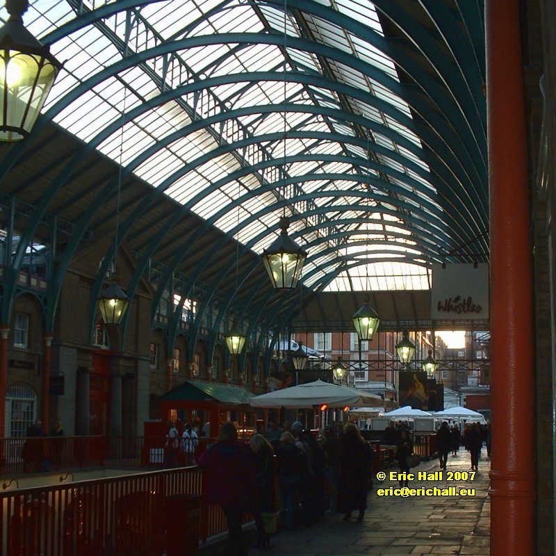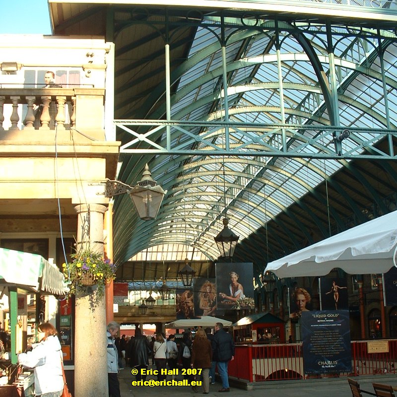 Here, the pre-Victorian engineers are experimenting with large open spaces, and have gone into two spans to cover the market area. It wasn't until 1875 that the one of the bays was roofed. The other had to wait until 1889. Contrast this with what later Victorian engineers had been able to accomplish, or even the massive 65 metre-wide steel and glass construction of the Kòlner Hauptbahnhof of 1894. How about a building such as these for Covent Garden?