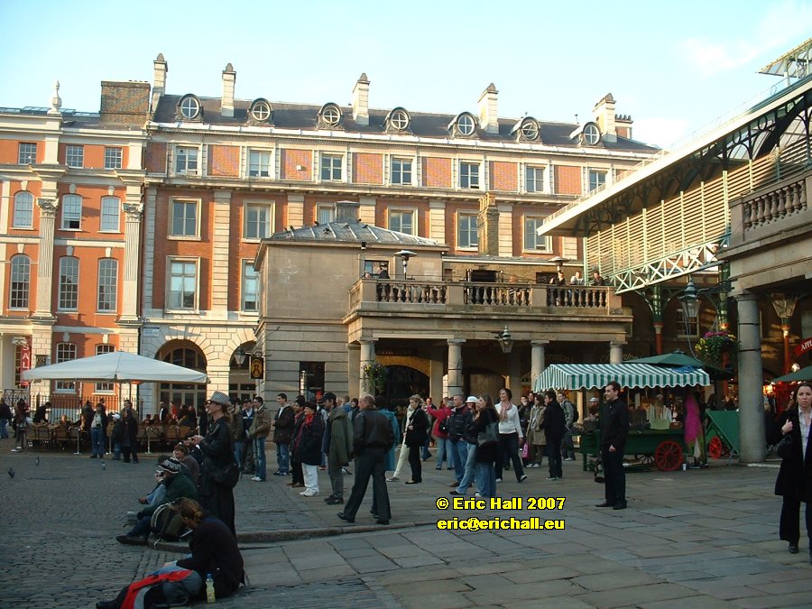 On the southern side was the boundary of the home of the Earl of Bedford so nothing was constructed here. On the west side (to the left of the photograph) is the Church of St. Paul.