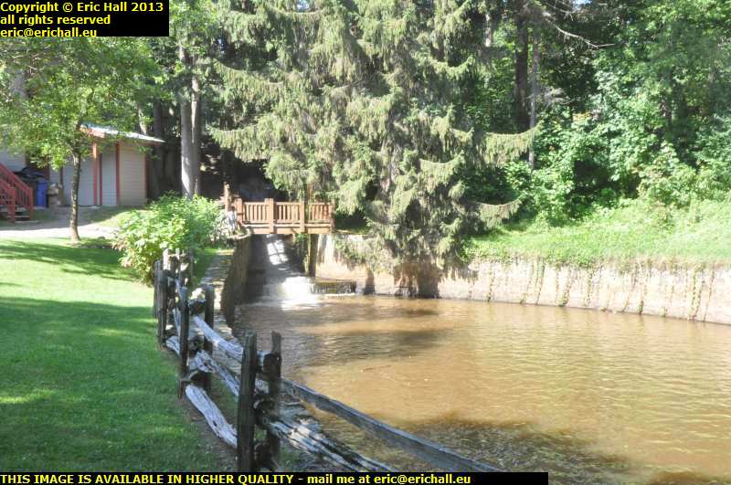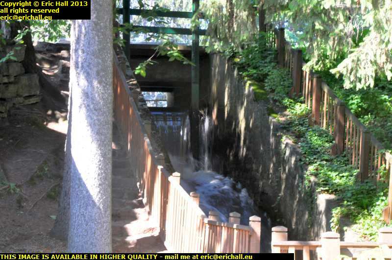 That's where I was standing just now - by the side of where that barrier is in the water. That's presumably to stop logs, branches, coureurs de bois kayaks and future Bishops of the Roman Catholic Church of Quebec falling down there and jamming up the water wheel.