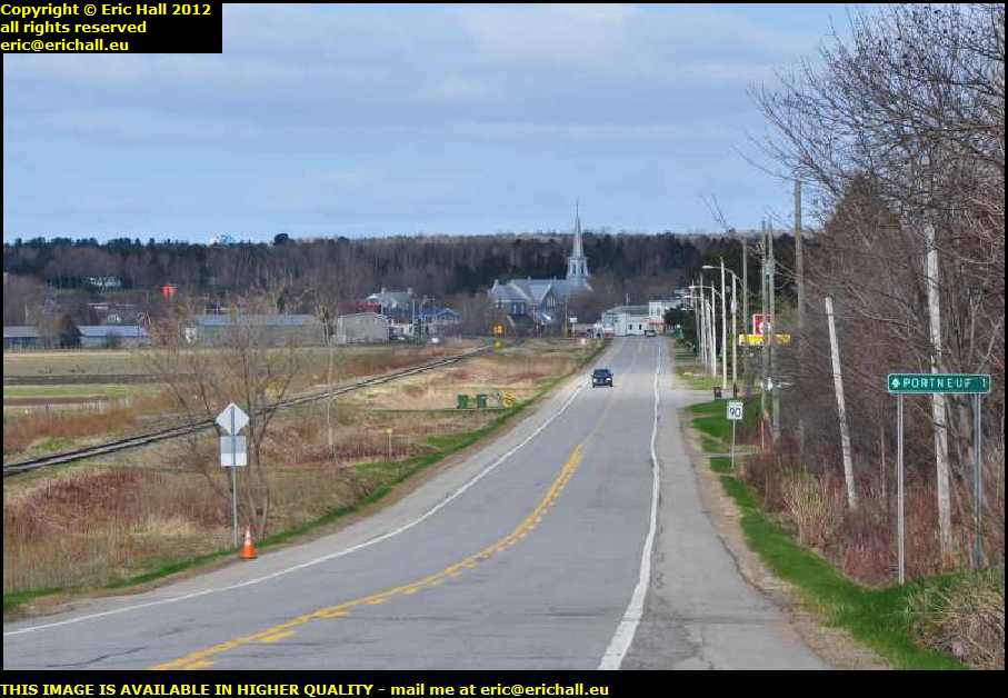 If you look underneath the modern road bridge that carries the present-day Highway 138 past the town, you'll see the river back there, with the modern part of the town of Portneuf in the background.