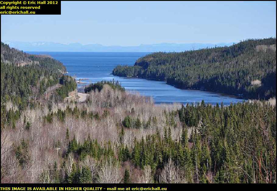 We have, right away in the distance, the south shore of the St Lawrence, with the river and then to the left, the road that we will shortly be following. And even a little baby fjord too - what more do you want down this road?