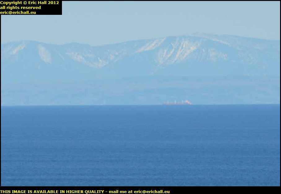 With some judicious enlargement, because despite modern terrorism legislation I can still go around blowing up my photographs, I was able to identify it as some kind of cruise ship.